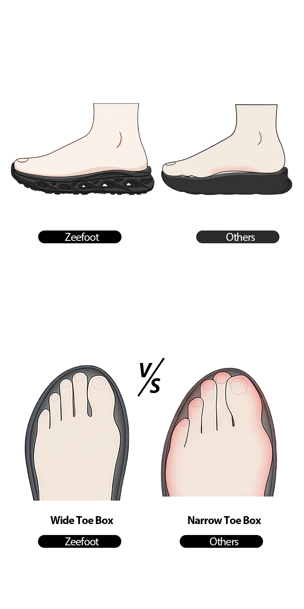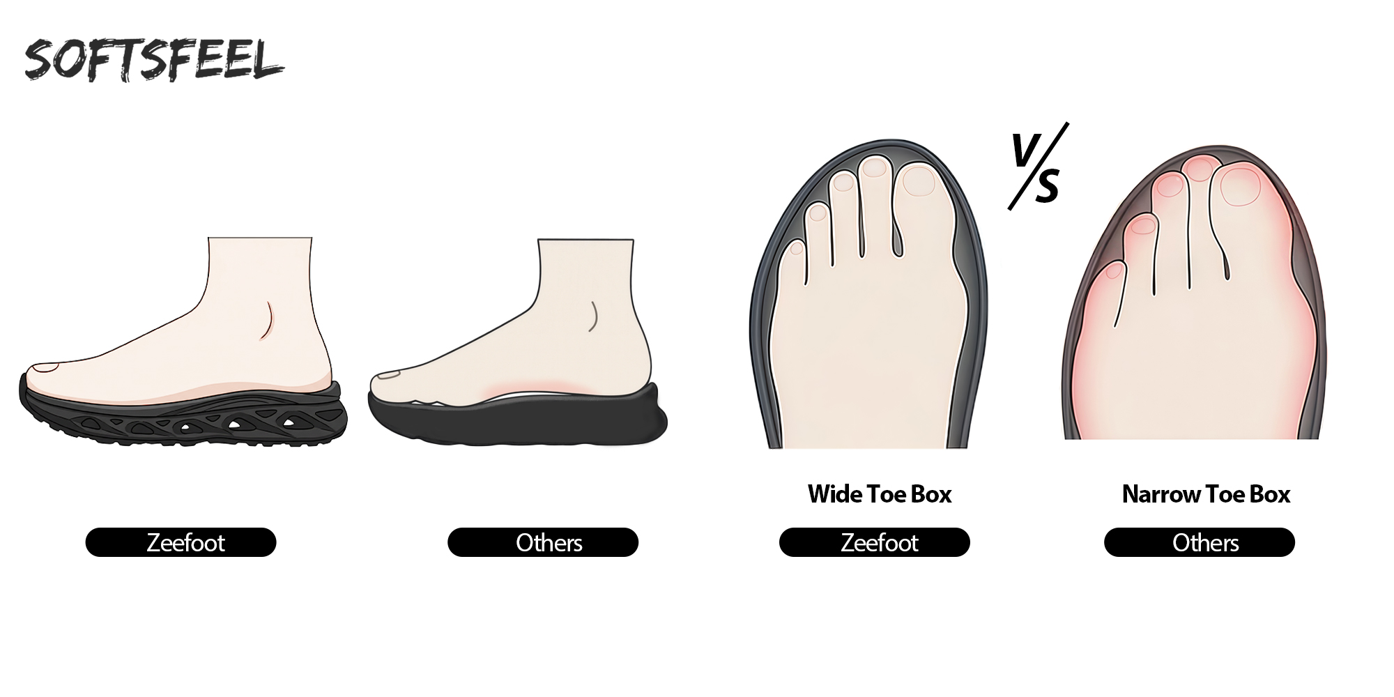 Zeefoot Rebound Core shoe features both wide and extra wide toe box to provide the maximum level of comfort for those with wide or average feet.
