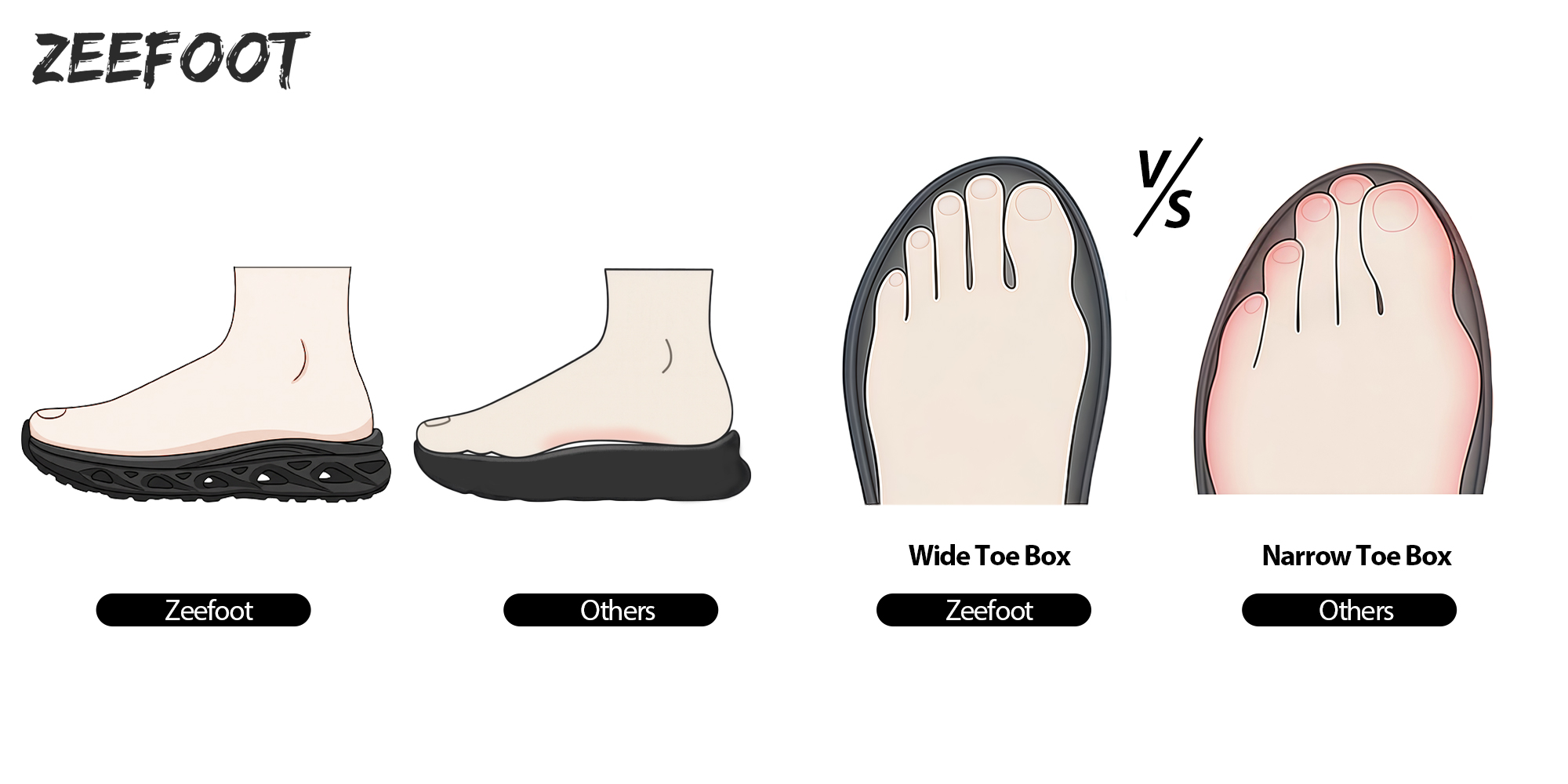 Zeefoot Rebound Core shoe features both wide and extra wide toe box to provide the maximum level of comfort for those with wide or average feet.